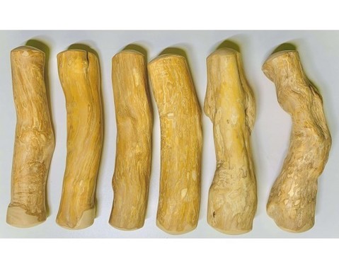 Le bois de café est un bois à grain très serré qui est plus dur que la plupart des bois indigènes. Simplement classé, séché et poncé pour donner un produit à mâcher sain, sûr et satisfaisant le besoin naturel de votre chien pour sa mastication quotidienne. En outre, il aide à prévenir l’ennui et favorise une bonne santé dentaire.