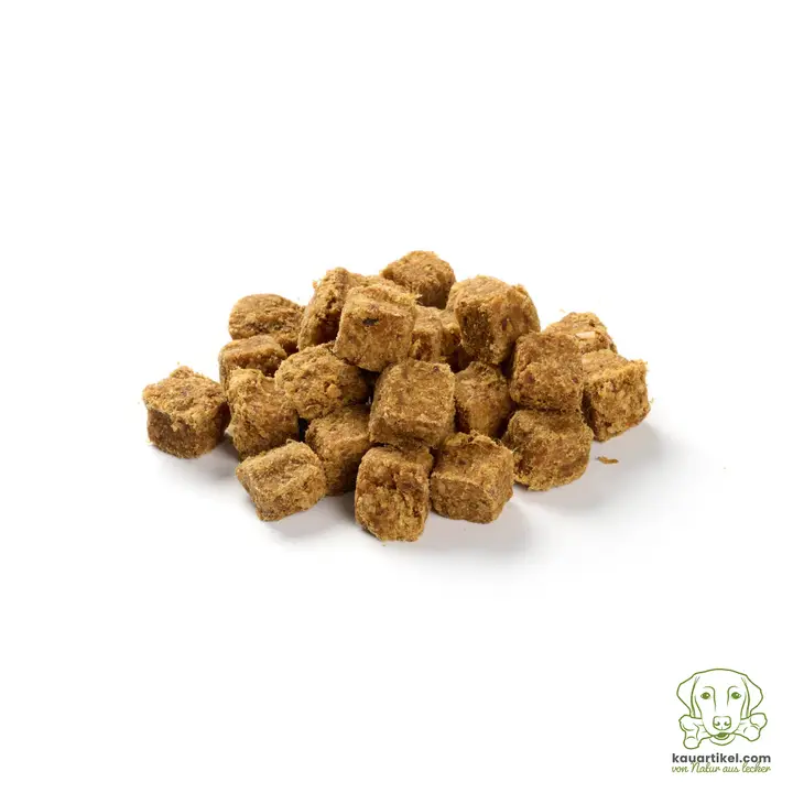Grâce à leur haute teneur en protéines et à leur faible teneur en matières grasses, ils sont donc idéaux comme récompense pendant l’entraînement ou comme petite gâterie entre les repas.