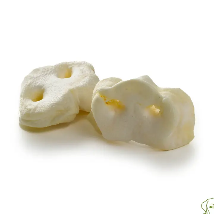 Longueur : 8-10 cm Largeur : 5-7 cm Poids (5 pièces) : 70-80g Odeur : peu teneur en matières grasses : faible Texture : douce Forfait mastication : collation courte séché et dégraissé.